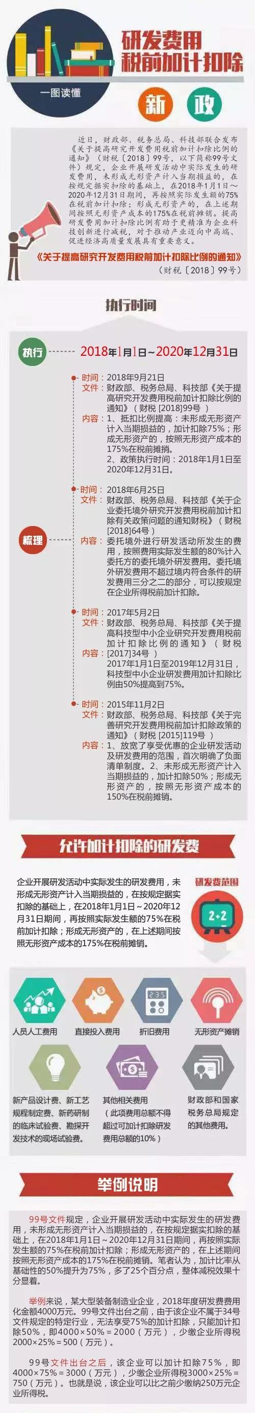 相關(guān)政策:財政部 稅務(wù)總局 科技部關(guān)于提高研究開(kāi)發(fā)費用稅前加計扣除比例的通知(財稅〔2018〕99號)