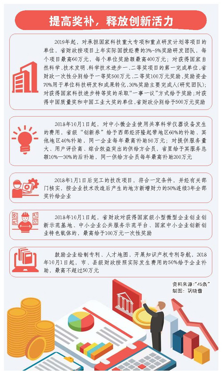 振興實(shí)體經(jīng)濟,實(shí)現動(dòng)能轉換,創(chuàng )新是第一動(dòng)力。“45條”大力鼓勵科技創(chuàng )新,讓科研人員拿雙份獎金、走綠色通道。