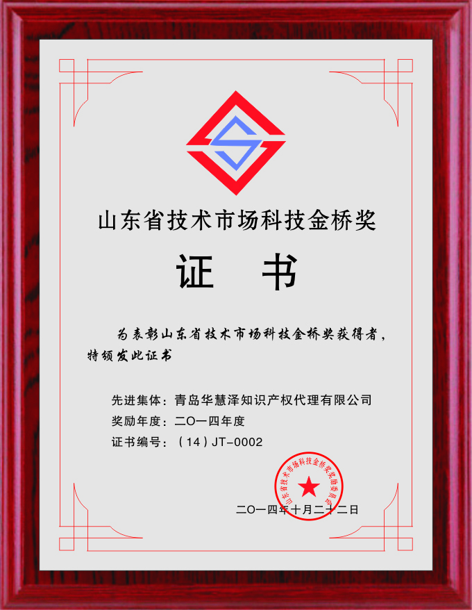 山東省技術(shù)市場(chǎng)科技金橋獎先進(jìn)集體