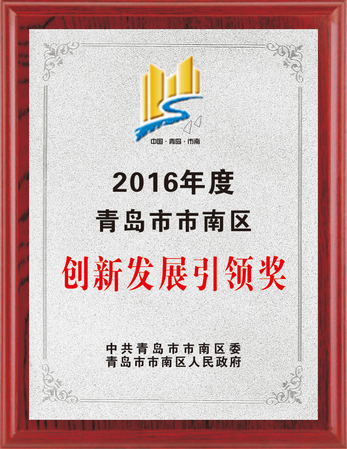 2016年度青島市市南區創(chuàng )新發(fā)展引領(lǐng)獎