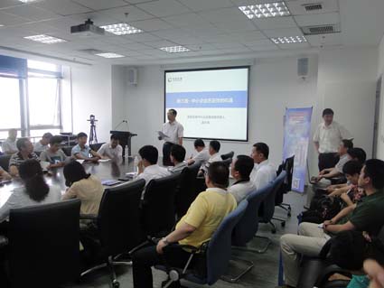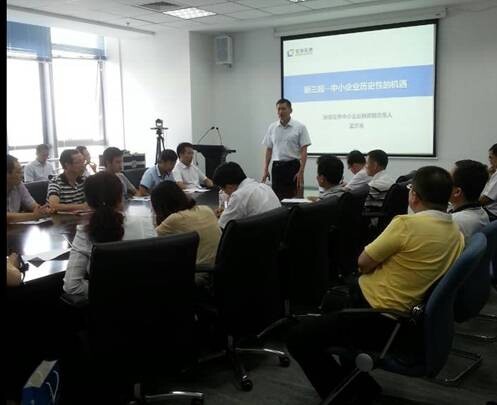 圖為參會(huì )企業(yè)認真聽(tīng)取新三板“多層次資本市場(chǎng)助力企業(yè)發(fā)展”的內容講解。