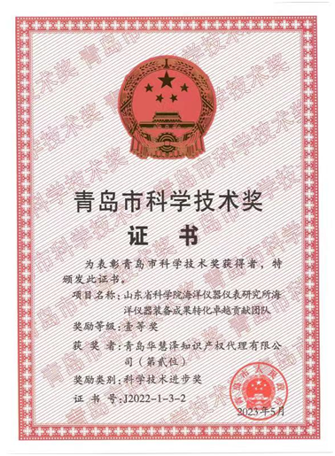 近日,青島市政府公布了《關(guān)于2022年度青島市科學(xué)技術(shù)獎勵的決定》(青政發(fā)〔2023〕8號)。青島華慧澤知識產(chǎn)權代理有限公司與山東省科學(xué)院海洋儀器儀表研究所等單位合作的“海洋儀器裝備成果轉化卓越貢獻團隊”項目,榮獲“2022年度青島市科學(xué)技術(shù)進(jìn)步獎一等獎”,是行業(yè)僅有上榜企業(yè)。這一榮譽(yù)再次彰顯了華慧澤公司在海洋儀器裝備成果轉化領(lǐng)域發(fā)揮專(zhuān)業(yè)優(yōu)勢,務(wù)實(shí)推進(jìn)行業(yè)發(fā)展做出的突出貢獻。