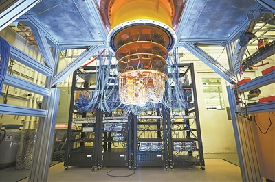 新成果有望使量子計算機變得更實(shí)用。圖為安裝在低溫室的谷歌量子計算機。圖片來(lái)源:物理學(xué)家組織網(wǎng)