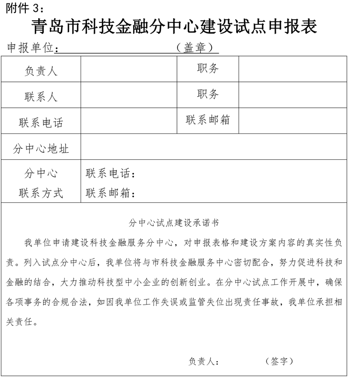 3.青島市科技金融分中心建設試點(diǎn)申報表