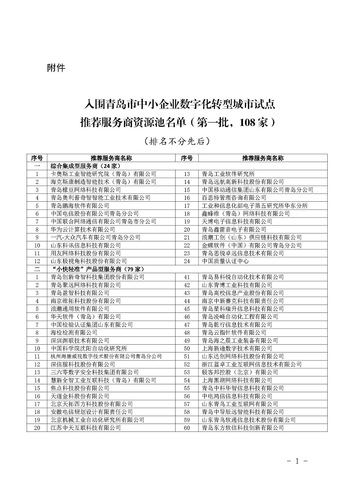附件: 入圍青島市中小企業(yè)數字化轉型城市試點(diǎn)推薦服務(wù)商資源池名單(第一批)